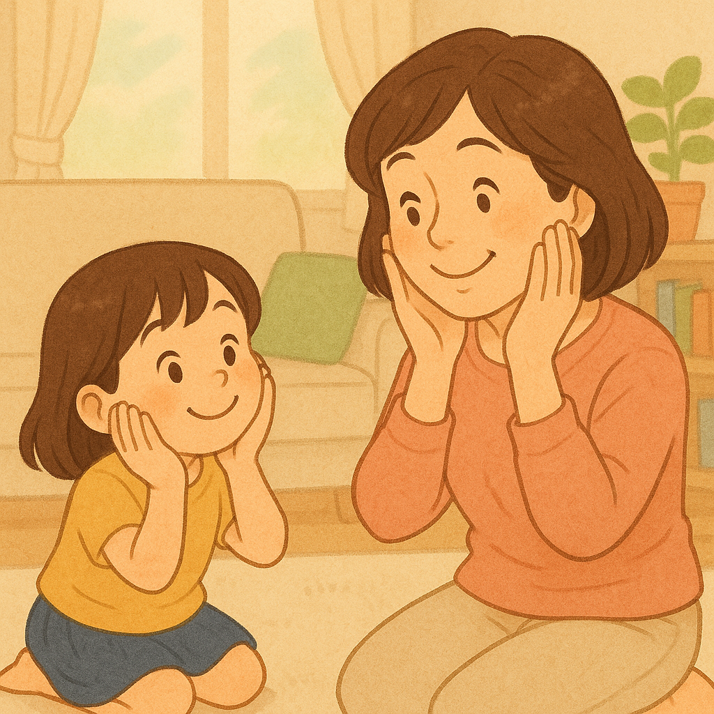 - 子どもは鏡のように同じ表情と動きをまねる。